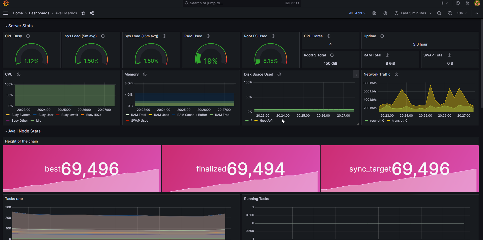 The below guide is for setting up a local Prometheus & Grafana instance on the same server as your Avail node. If you’re already experienced with Prometheus & Grafana and want to connect your Avail node to an existing Prometheus installation on a different server, include the --prometheus-external flag in your Avail node’s startup command.